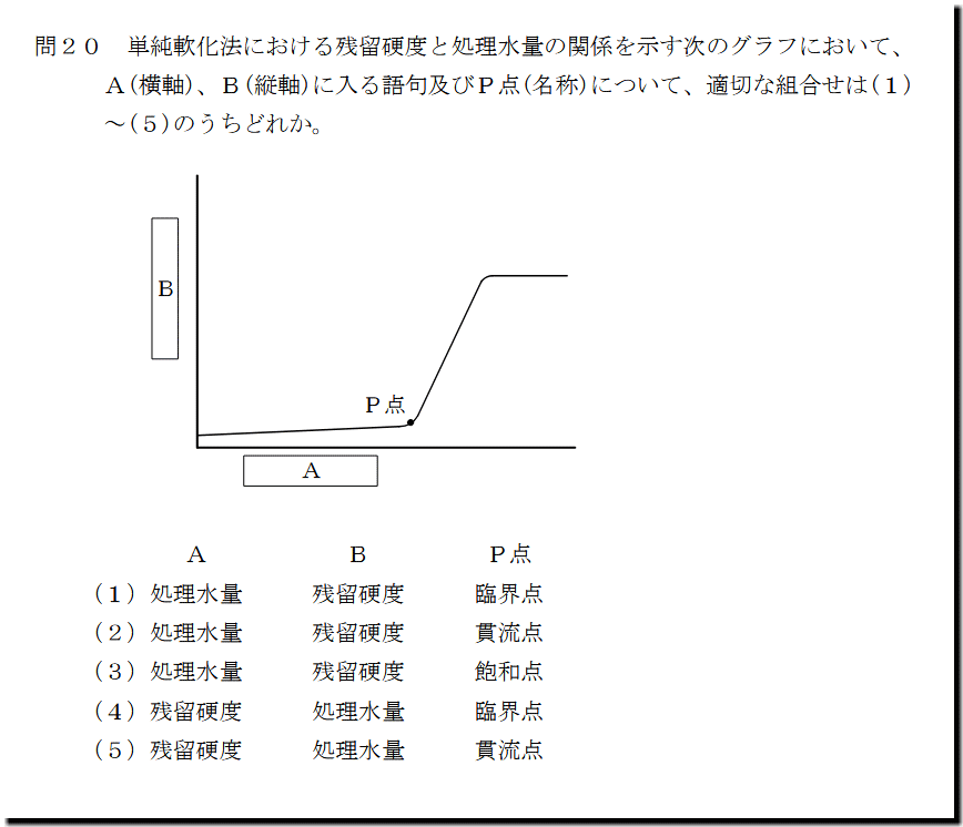 二級ボイラー技士 過去問+解説:令和7年10月の第20問目の解説。本問は、「単純軟化法」の問題です。純軟化法は、そこそこ出題実績がありますが、本問のような新規で問われると、アレレとなります。選択肢丸ごとで押さえて人は解けるでしょうが、そうでないなら、厳しいですね。復習だけはしておきましょう。