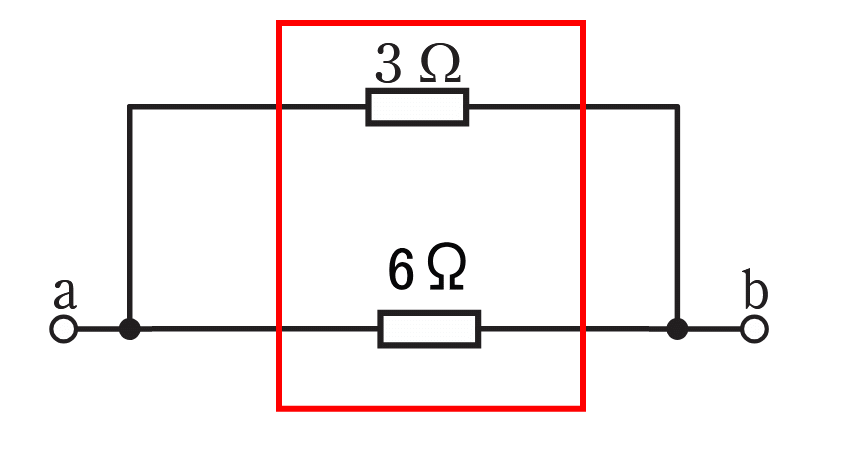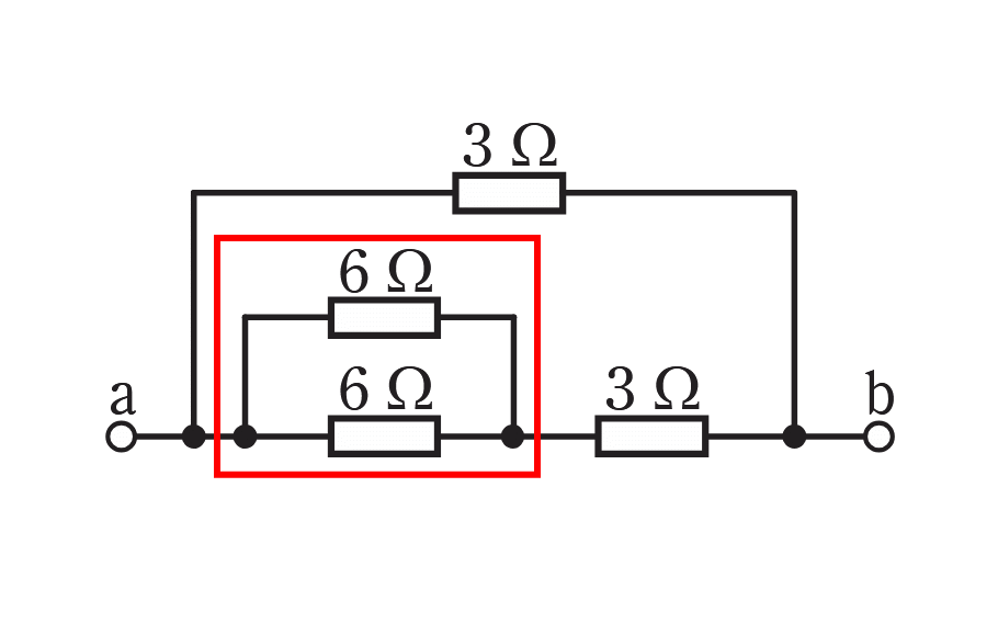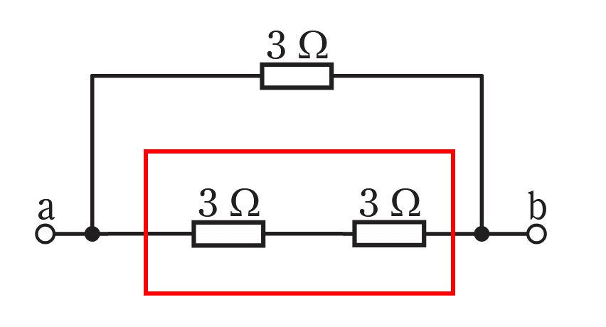 ひとまず、上記部分の合成抵抗を求めましょう。