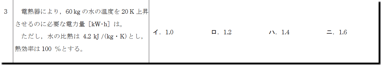 第3問は、「電力量計算」を問う問題です。解き方を憶えていれば、文系でも取れる問題です。暗記で解ける問題なので、問題ないはずです。ただ、単位の計算だけは、注意してください。