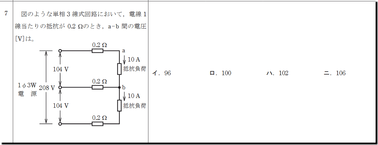 7問:単相3線式回路の電圧・・・「ふつう」。