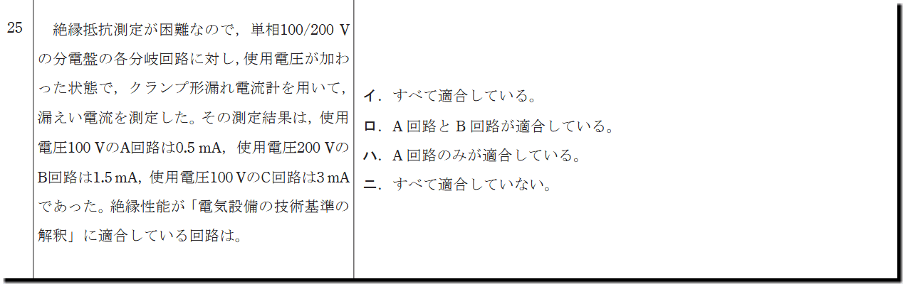 25問:クランプ形漏れ電流計・・・「ふつう」。