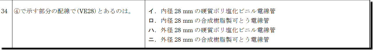 34問:電線管図記号・・・「ふつう」。