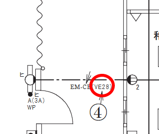 問題の言う「電線管図記号」は、以下の画像のところです。