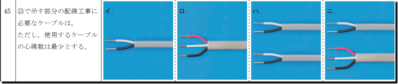 21問:三相電動機回路の施工方法・・・「ふつう」。