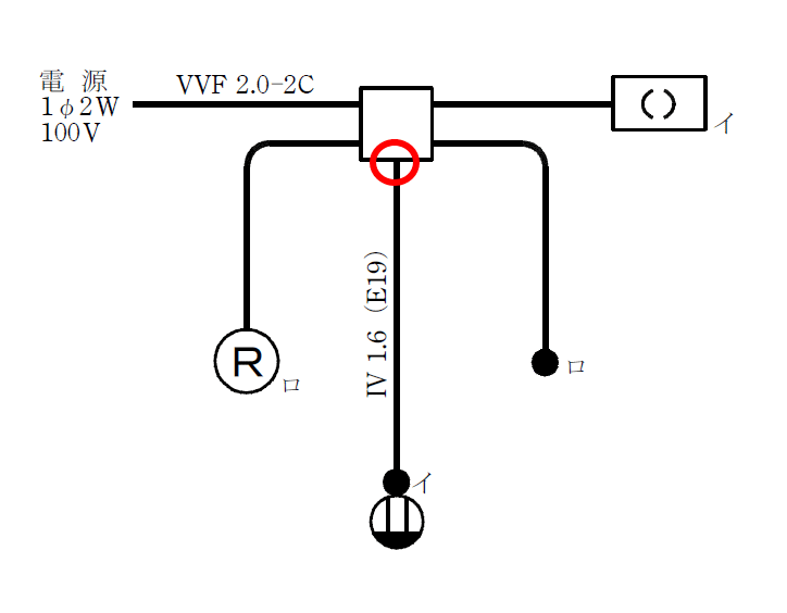 複線図の書き方は、「複線図‐No.11:ねじなし管」を参考にしてください。