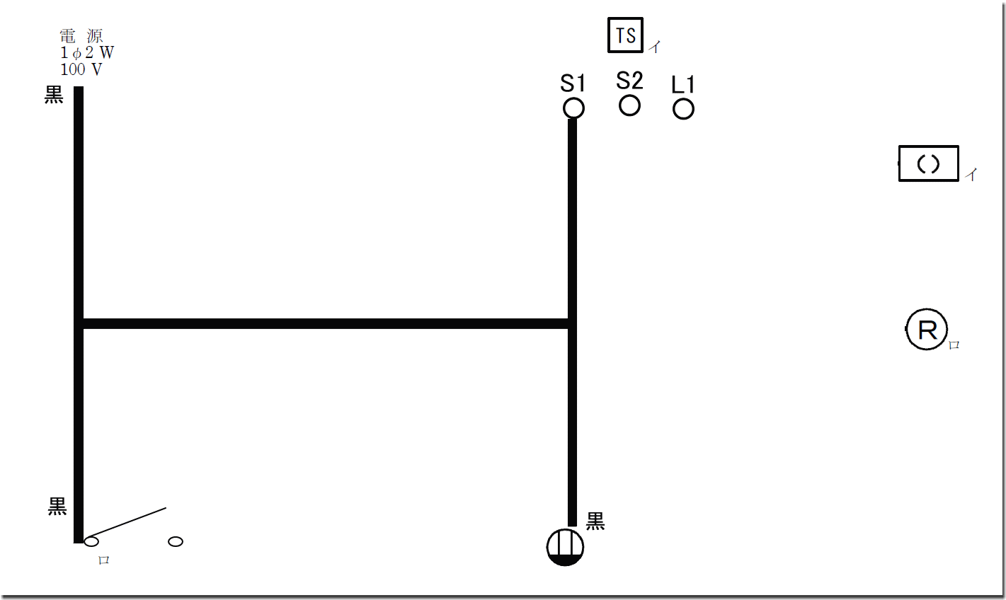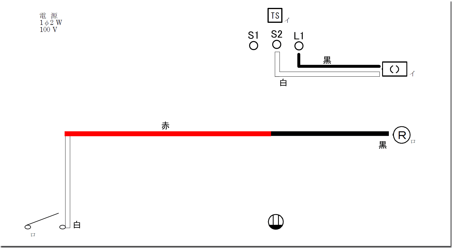 ・L1・・・黒・・・イの引掛けシーリングの非接地側