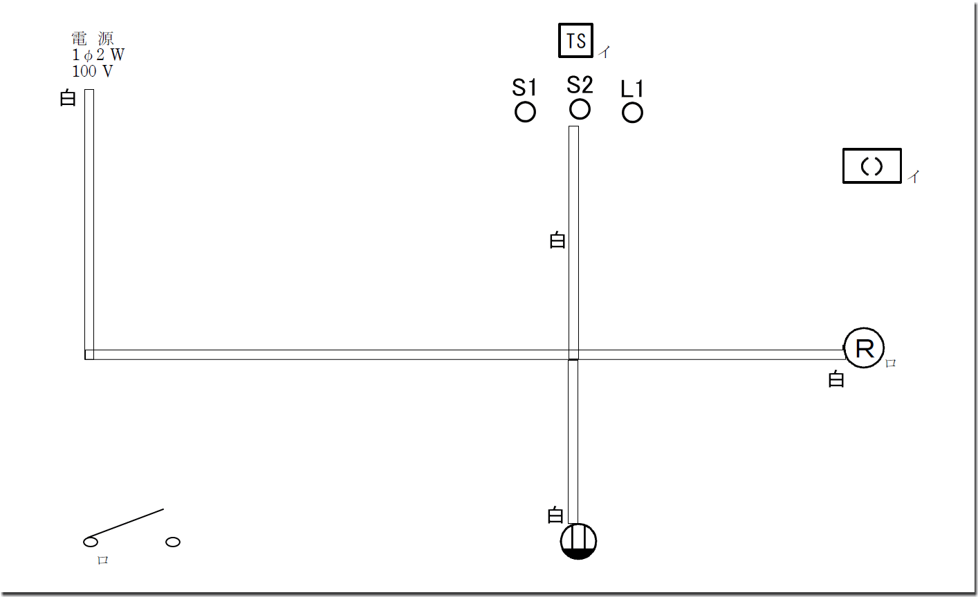 複線図作成に当たっては、まずもって、固有部分の「TS(タイムスイッチ)」を先に書いてしまいましょう。