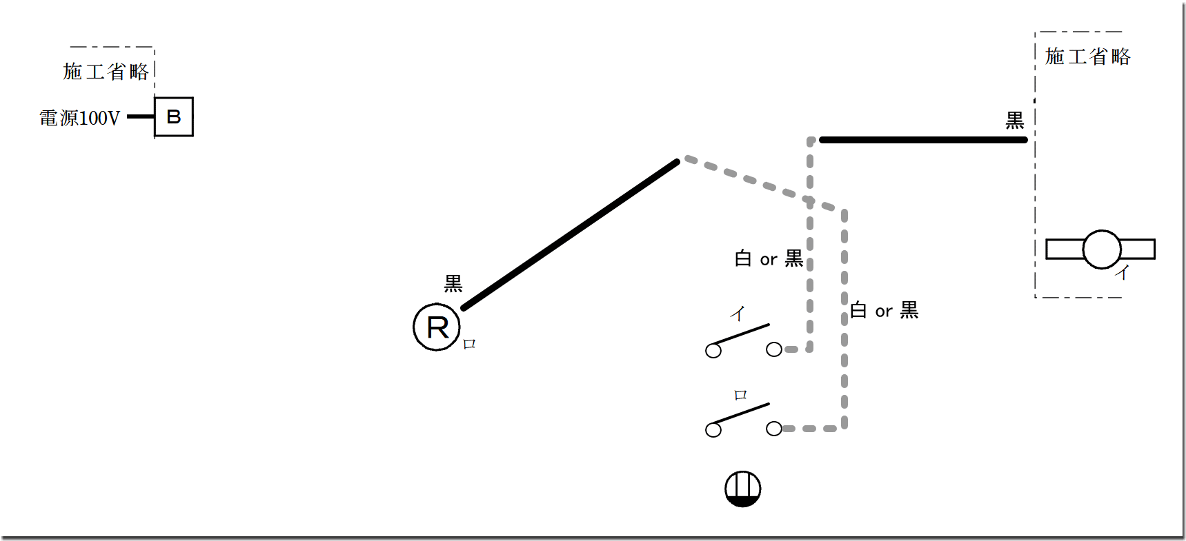 なお、電線の色ですが、点滅器と各負荷の接続は、白でも黒でもOKとなっています。