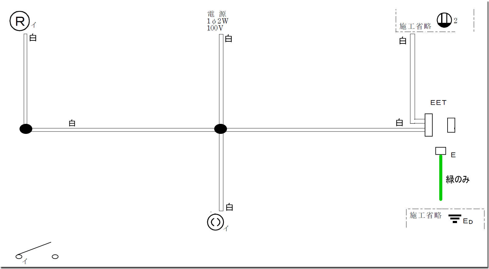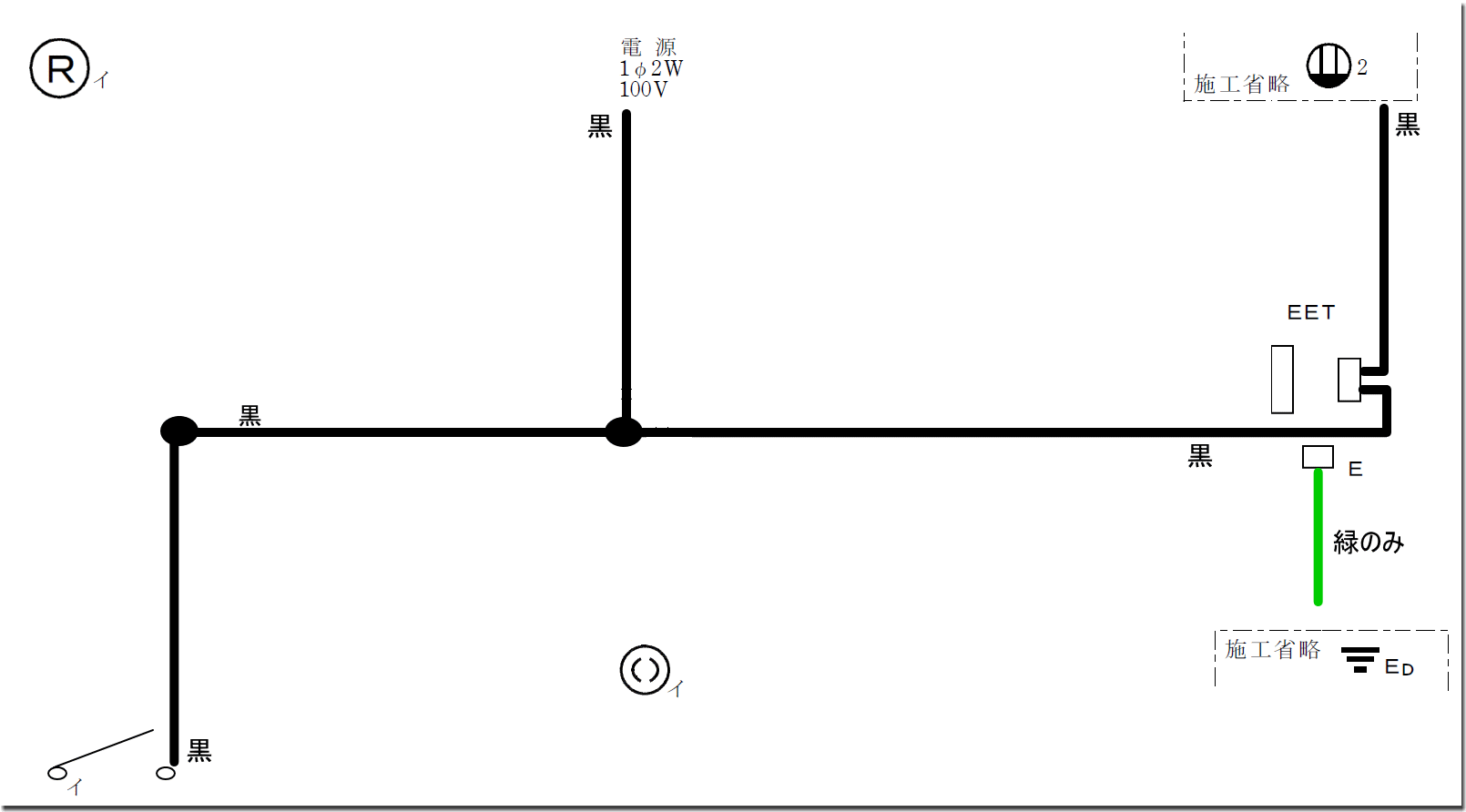 下の方の「ED」は、これも「施工省略」で、実際の作業は、EETに「緑」の電線を差し込むだけです。
