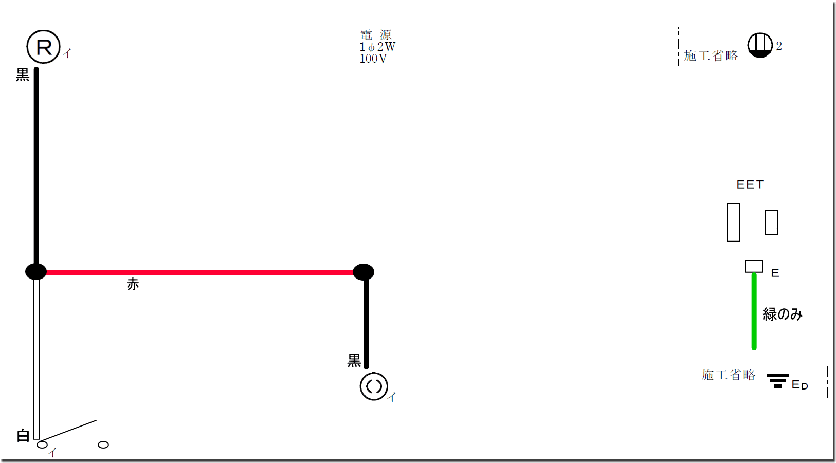 固有部分の「EET」ですが、上の2口コンセントが「施工省略」なので、上に「黒」線を引けばおしまいです。