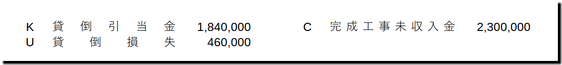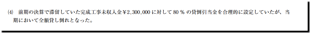問題文には、「前期の決算で滞留していた完成工事未収入金¥2,300,000 に対して 80 % の貸倒引当金を合理的に設定していた」とあります。