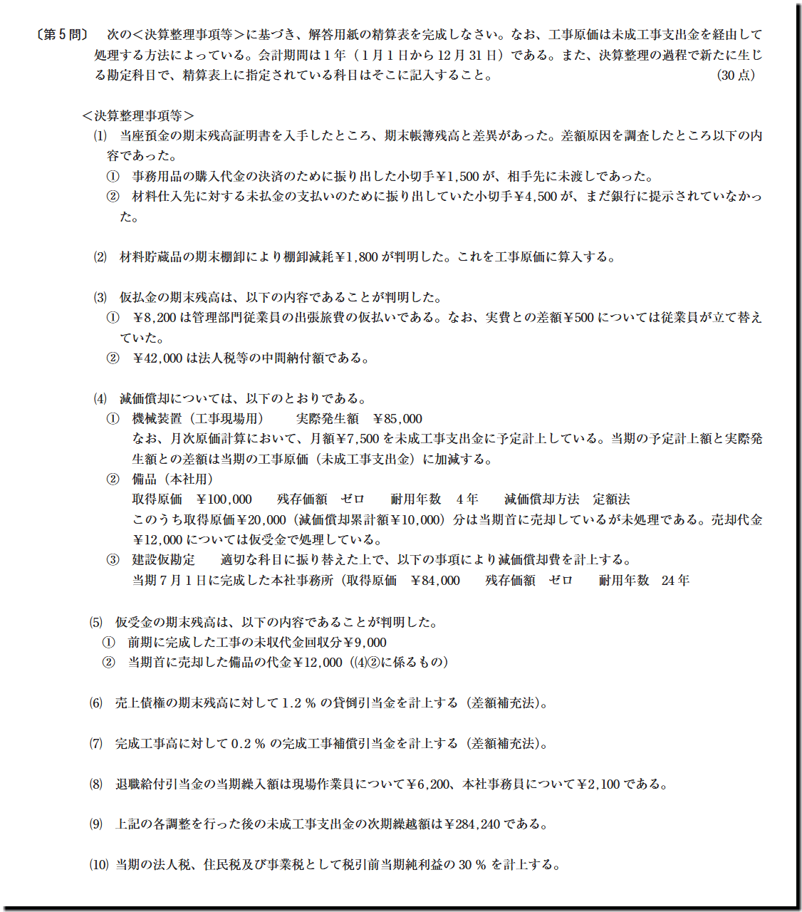 第37回試験の第5問『精算表』の設問1を解説するページです。当該設問は、「銀行勘定調整」を処理する問題です。仕訳は、基礎・基本的なものなので、難しいところはありません。