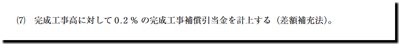 問題文には、「完成工事高に対して 0.2 % の完成工事補償引当金を計上する(差額補充法)」とあります。