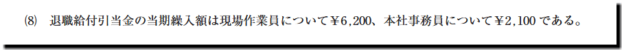 問題文には、「退職給付引当金の当期繰入額は現場作業員について¥6,200、本社事務員について¥2,100 である。」とあります。