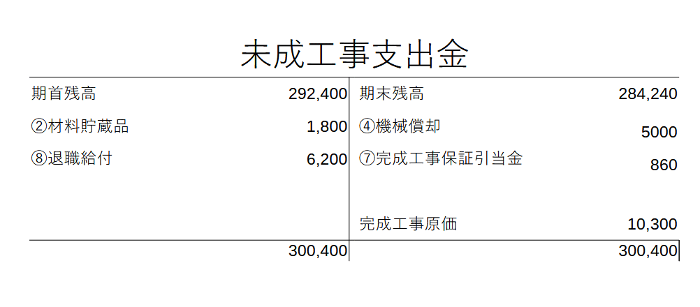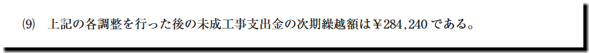 そして、問題文には、「各調整を行った後の未成工事支出金の次期繰越額は¥284,240 である」とあります。