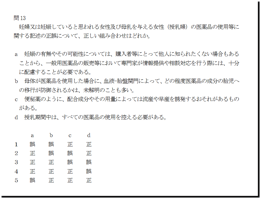 選択肢cの「便秘薬のように、配合成分やその用量によっては流産や早産を誘発するおそれがあるもの がある。」ですが、正しい記述です。