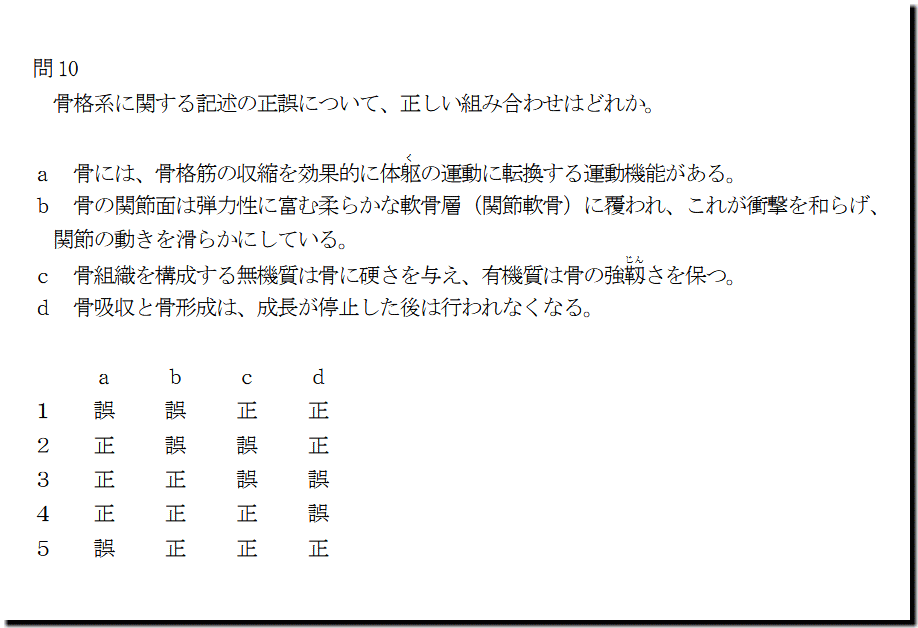 本問は、「人体」の「骨格系」についての問題です。特に難しいところはありません。テキストを読んで問題集を解いていれば、解けます。