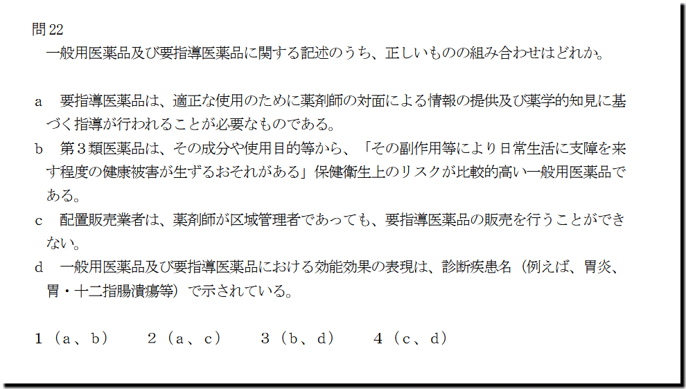 本問は、「法規」の「一般用医薬品及び要指導医薬品」についての問題です。基礎・基本的なものばかりなので、難しいところはありません。テキストと過去問を繰り返しておけば、まず、取れます。