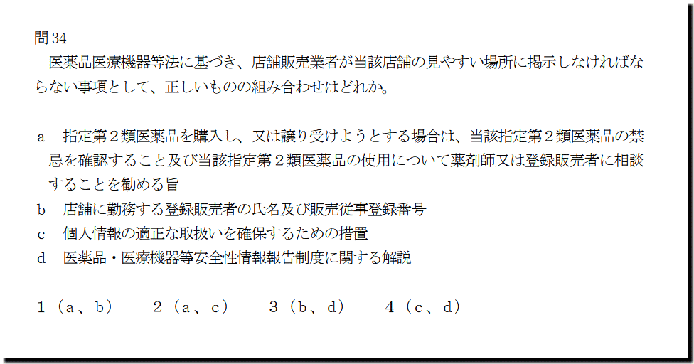 「b 店舗に勤務する登録販売者の氏名及び販売従事登録番号」と「d 医薬品・医療機器等安全性情報報告制度に関する解説」は、先のリストにないですね。