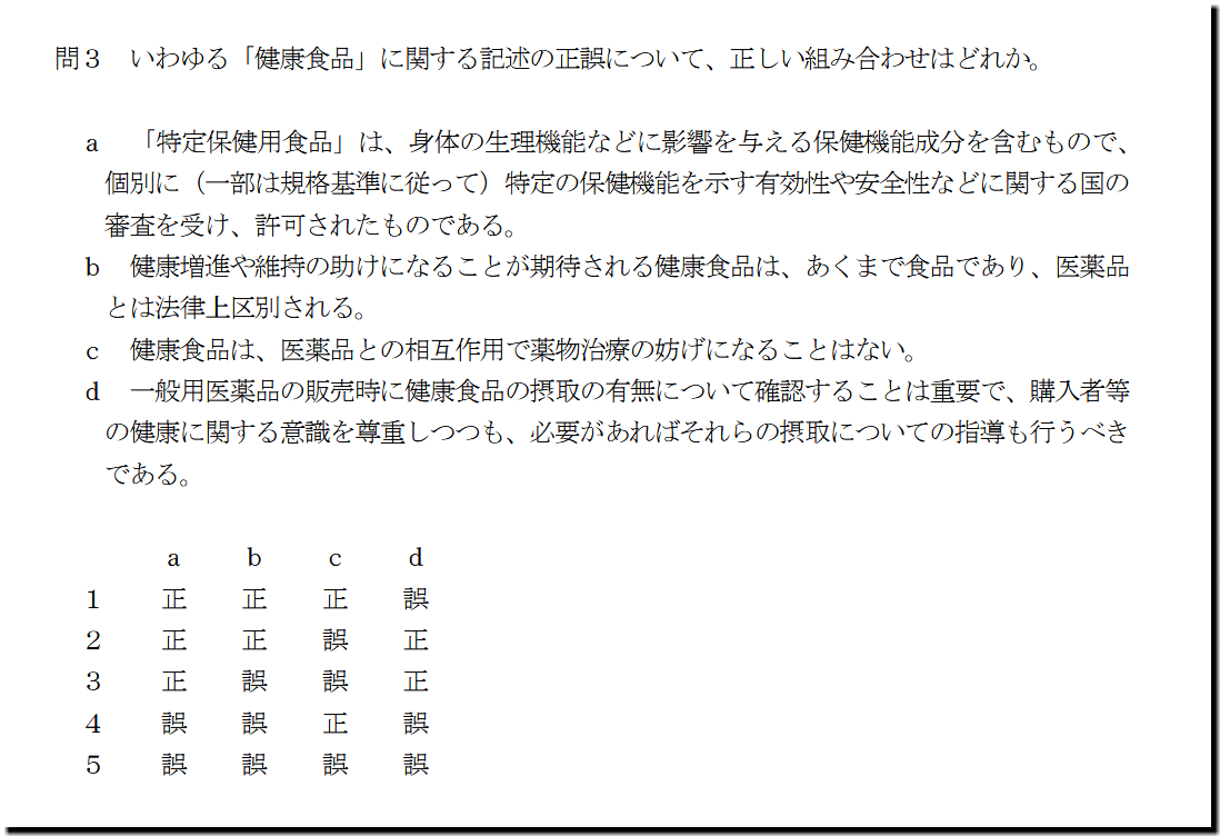 本問は、「基本知識」の「健康食品」の問題です。難しいところはありません。テキストを精読していれば、おおむね解ける選択肢ばかりです。問題文をよく読んで、常識的に考えれば解ける問題です。