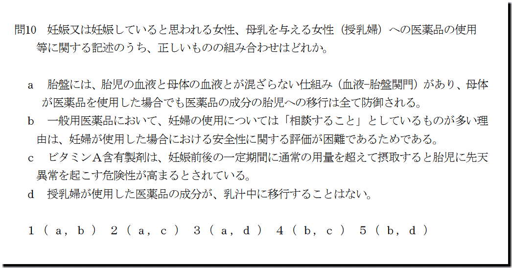 間違っているのは、「母体 が医薬品を使用した場合でも医薬品の成分の胎児への移行は全て防御される。」のところです。