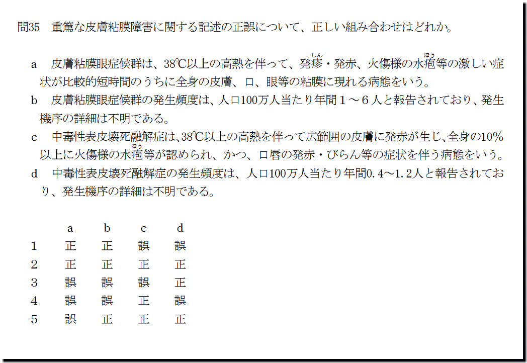 選択肢に不安なものがある人は、「Webテキスト:重篤な皮膚粘膜障害」で、おさらいしておいてください。