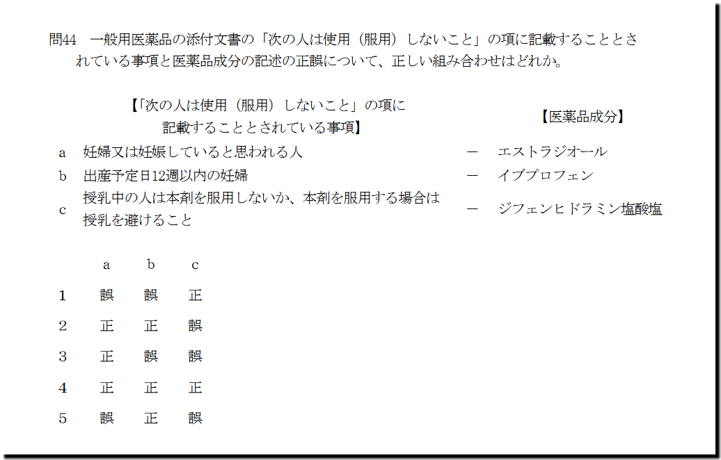 本問は、「適正使用」の「次の人は使用(服用)しないこと」についての問題です。基礎・基本的なものばかりなので、難しいところはありません。テキストと過去問を繰り返しておけば、まず、取れます。