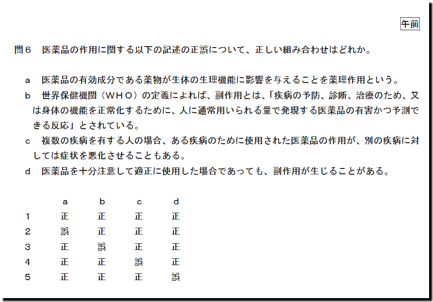 令和7年度(2025年度)福島県 登録販売者試験の過去問と解説。本問は、「基本知識」の「医薬品の作用」の問題です。テキストを精読し、過去問演習を繰り返していれば、まず、解ける問題です。貴重な1点を確保です。