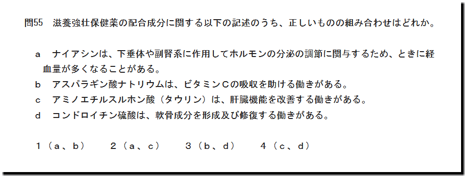 令和7年度(2025年度)福島県 登録販売者試験の過去問と解説。本問は、「医薬品」の「滋養強壮保健薬」についての問題です。基礎・基本的なものばかりなので、難しいところはありません。テキストと過去問を繰り返しておけば、まず、取れます。