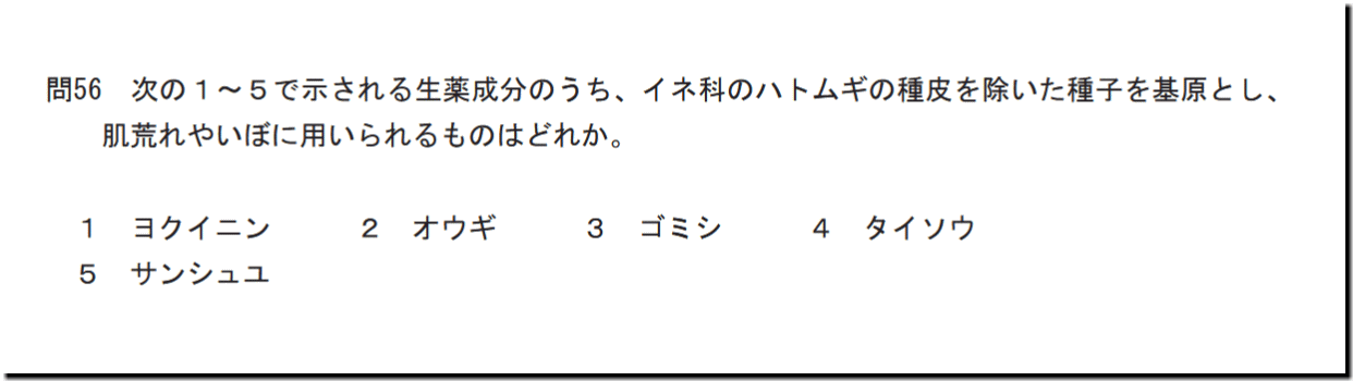 令和7年度(2025年度)福島県 登録販売者試験の過去問と解説。本問は、「医薬品」の「生薬(肌荒れ・いぼ)」についての問題です。基礎・基本的なものばかりなので、難しいところはありません。テキストと過去問を繰り返しておけば、まず、取れます。