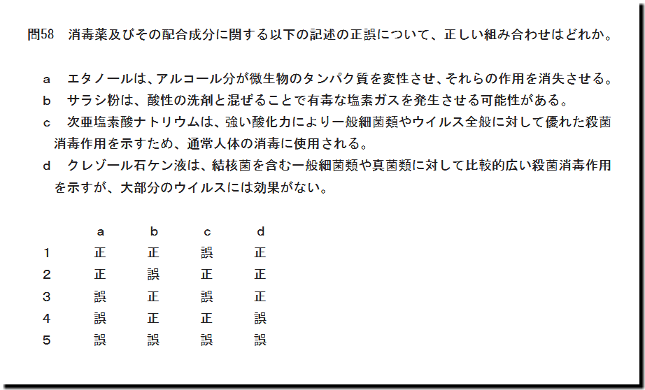 令和7年度(2025年度)福島県 登録販売者試験の過去問と解説。本問は、「医薬品」の「消毒薬の配合成分」についての問題です。基礎・基本的なものばかりなので、難しいところはありません。テキストと過去問を繰り返しておけば、まず、取れます。