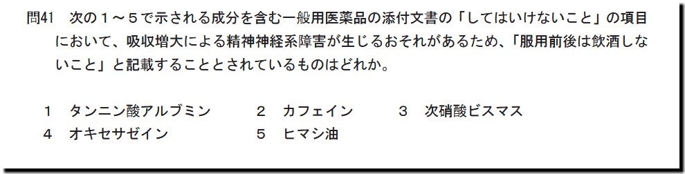 令和7年度(2025年度)福島県 登録販売者試験の過去問と解説。本問は、「適正使用」の「服用前後は飲酒しな いこと」についての問題です。難しいところはありません。テキストや過去問で、基礎・基本事項を押えて臨んでください。