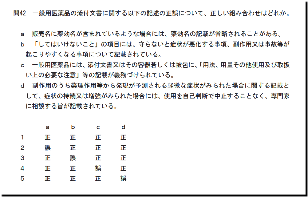 間違っているのは、「使用を自己判断で中止することなく専門家 に相談する旨が記載されている」のところです。