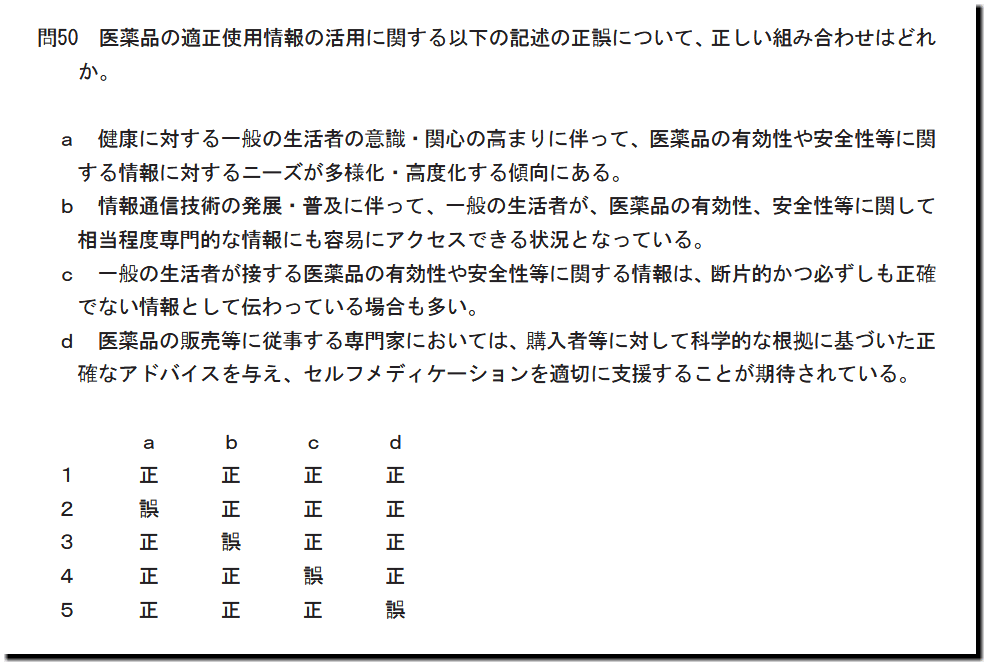 選択肢bの「情報通信技術の発展・普及に伴って、一般の生活者が、医薬品の有効性、安全性等に関して 相当程度専門的な情報にも容易にアクセスできる状況となっている。」ですが、正しい記述です。