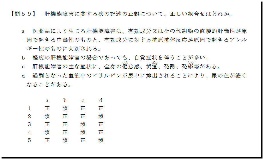 選択肢aの「医薬品により生じる肝機能障害は、有効成分又はその代謝物の直接的肝毒性が原 因で起きる中毒性のものと、有効成分に対する抗原抗体反応が原因で起きるアレル ギー性のものに大別される。」ですが、正しい記述です。