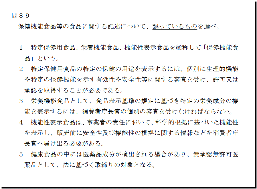 本問は、「法規」の「保健機能食品等」についての問題です。難しいところはありません。基礎・基本事項の出題です。