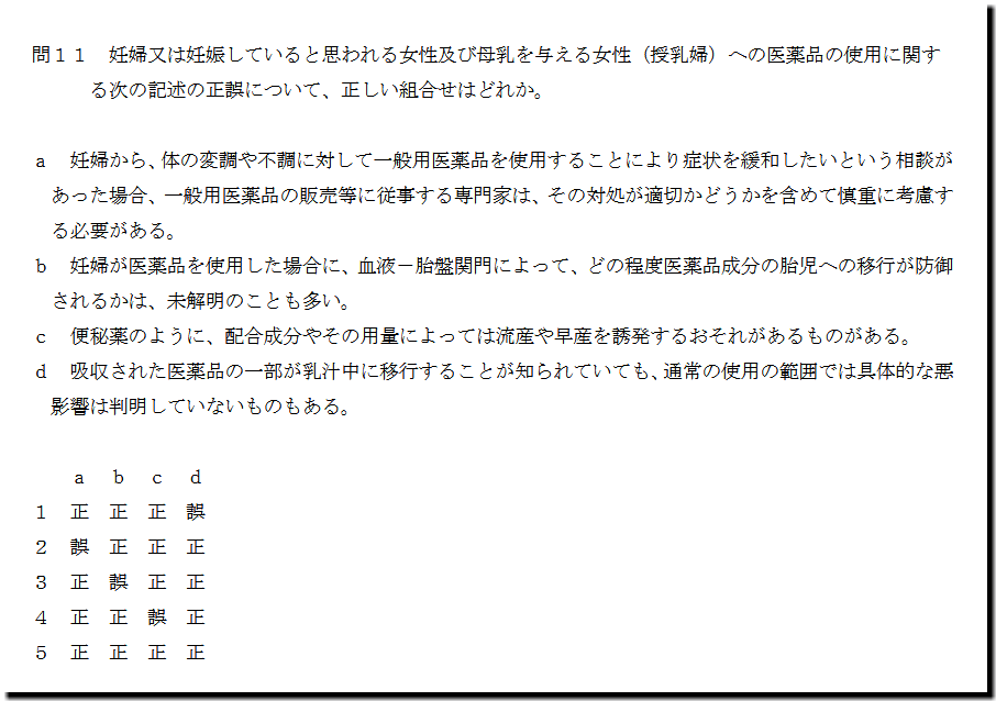 本問は、「基本知識」の「妊婦等」の問題です。基礎・基本的なものばかりなので、難しいところはありません。テキストと過去問を繰り返しておけば、まず、取れます。