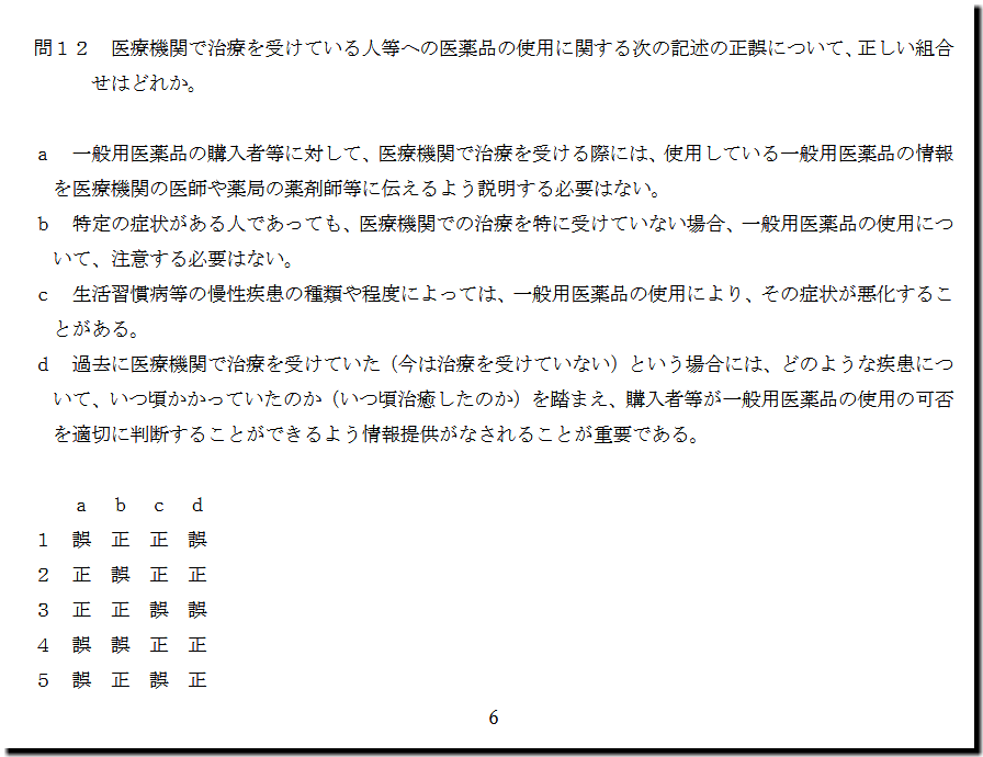 選択肢cの「生活習慣病等の慢性疾患の種類や程度によっては、一般用医薬品の使用により、その症状が悪化するこ とがある。」ですが、正しい記述です。
