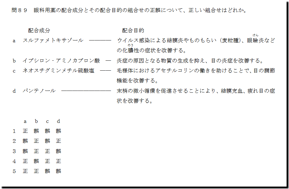 本問は、「医薬品」の「眼科用薬」についての問題です。難しいところはありません。基礎・基本事項の出題です。