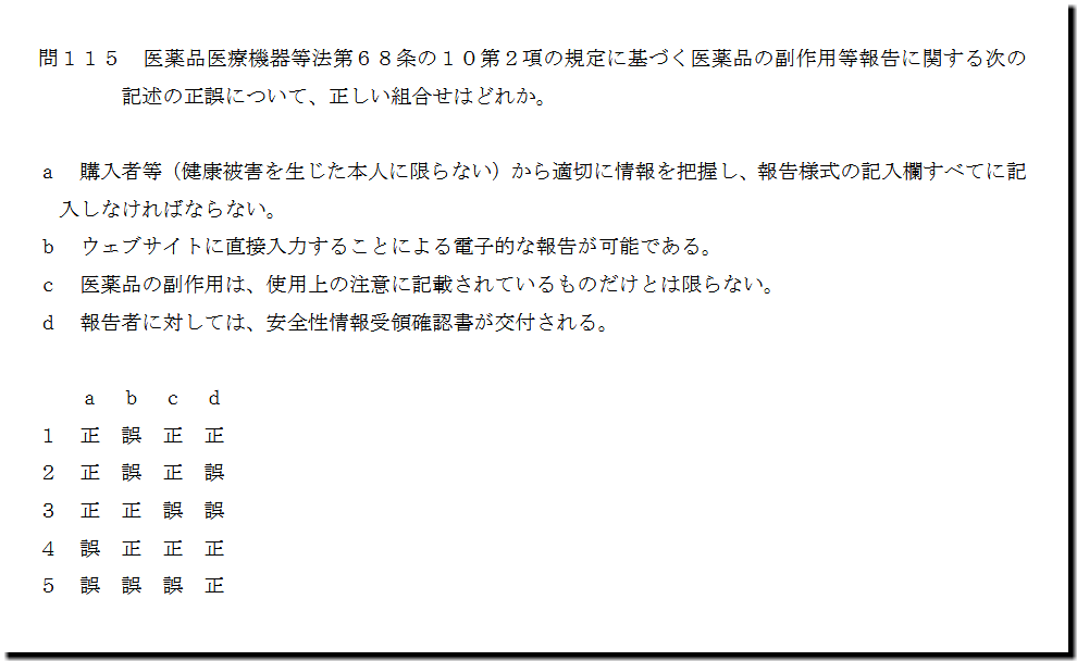 本問は、「適正使用」の「副作用の報告」についての問題です。「15日以内」に報告するものを問うています。最近、当該報告期限が問われるようになっています。テキストを精読し、解けるようになっておきましょう。